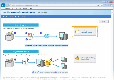 Klikk på [Start] for [Innstillingsverktøy for sendefunksjon].