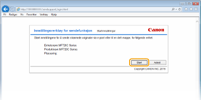 Klikk på [Start] for [Innstillingsverktøy for sendefunksjon].