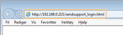 Skriv "http://(maskinens IP-adresse)/sendsupport_login.html" i adressefeltet i en nettleser, og trykk på [ENTER].