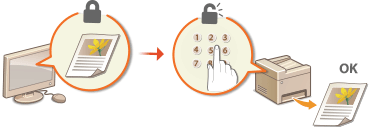 Ved å stille inn en PIN-kode på et dokument ved utskrift fra en datamaskin, holdes dokumentet i minnet på maskinen, og skrives ikke ut før riktig PIN-kode er angitt på maskinens betjeningspanel. Denne funksjonen kalles "Konfidensiell utskrift" og dokumentet som er beskyttet av en PIN-kode kalles et "sikret dokument". Bruk av konfidensiell utskrift forhindrer at konfidensielle dokumenter er uten tilsyn. Før du kan bruke denne funksjonen, må du utføre noen prosedyrer.