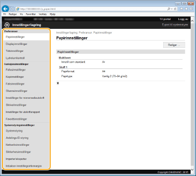 Enkelte innstillinger krever at du først logger på i systemstyrermodus før du kan endre dem.