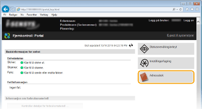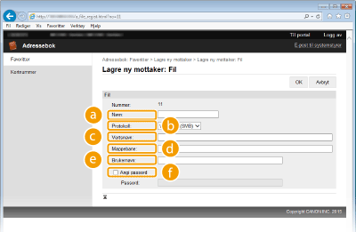 Du kan registrere eller redigere adresseboken for maskinen ved å bruke datamaskinen. Angi den delte mappen / FTP-serveradressen her.
