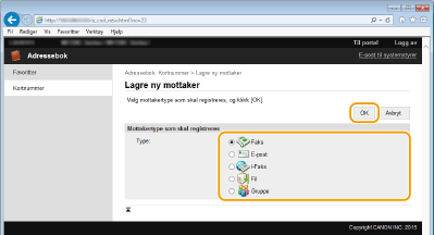 Velg [Mottakertype som skal registreres], og klikk på [OK].