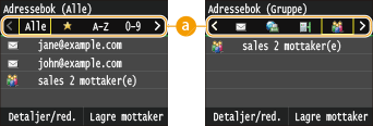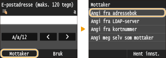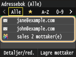 Adresseboken lar deg spesifisere en mottaker ved å velge fra en liste over registrerte mottakere eller ved å søke etter navn på mottakere.