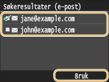 Hvis godkjenningsskjermbildet vises når du trykker på <Start søk>, angir du brukernavnet for maskinen og passordet som er registrert på LDAP-serveren, og trykker på <Bruk>.