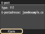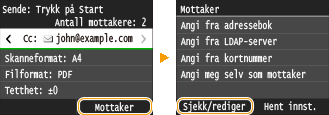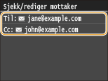 Før du velger <Sjekk/rediger> i trinn 1, kan du trykke på  /  hvis du vil bytte mellom mottakerne du har angitt. Vis en mottaker som du vil slette og trykk på  .