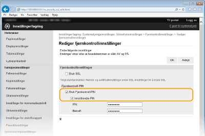 ![]() Hvis du glemmer PIN-kodenAngi en ny PIN-kode for Fjernkontroll i innstillingsmenyen på betjeningspanelet. Fjernkontrollinnstillinger