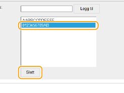 Angi MAC-adressen i tekstboksen [Adresse som skal lagres], og klikk på [Legg til].