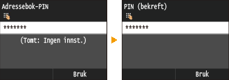 Adresseboken kan stilles inn til å kreve at brukere angir en PIN-kode for å kunne legge til nye oppføringer i adresseboken eller redigere eksisterende oppføringer. Ved å angi en PIN-kode for adresseboken kan du redusere risikoen for at dokumenter sendes til utilsiktede mottakere, fordi endringer i adresseboken bare kan utføres av brukere som kjenner til PIN-koden.