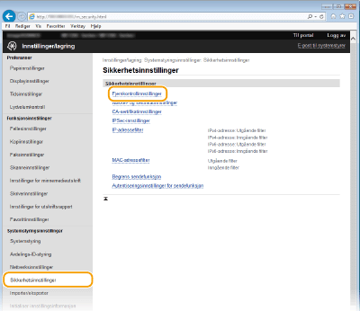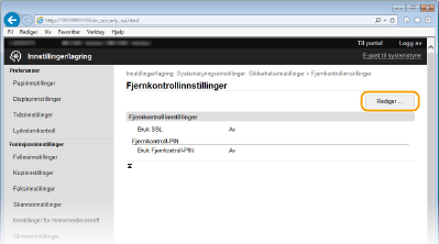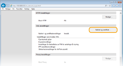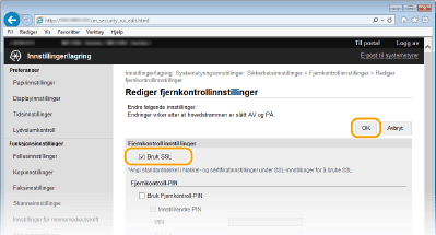 Bruke betjeningspaneletDu kan også aktivere eller deaktivere SSL-kryptert kommunikasjon fra <Meny> i <Hjem>-skjermbildet. Bruk SSL