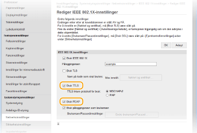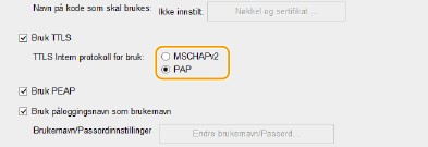 Merk av for [Bruk TTLS] eller [Bruk PEAP].