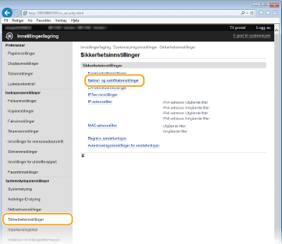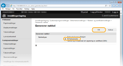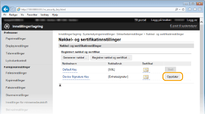 Klikk på [Oppdater] til høyre for enhetssignaturnøkkelen.