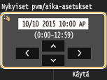 / näytetään, siirrä kohdistinta napauttamalla.ArvoalueSyöttökentän alapuolella sulkeissa ( ) näytetyt arvot ovat syötettävien arvojen rajat.