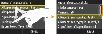 . Voit säätää asetusta myös pyyhkäisemällä liukusäädintä vasemmalle tai oikealle.