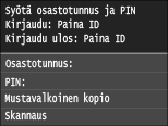 Kun sisäänkirjautumisnäyttö näytetään, noudata seuraavia ohjeita ja syötä osastotunnus ja PIN.