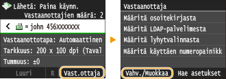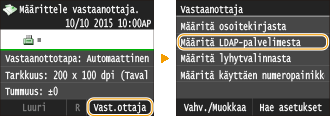 Jos toimistossasi on asennettuna LDAP-palvelin, voit myös määrittää palvelimeen tallennetut vastaanottajat. Kun haluat määrittää vastaanottajat, avaa LDAP-palvelin laitteen avulla ja valitse sitten vastaanottaja.