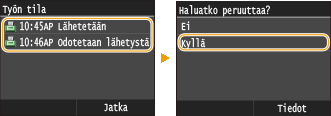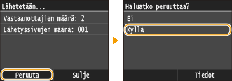 Napauta <Peruuta>, joka näkyy näytössä faksin lähetyksen aikana.