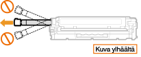 Ravista väriainekasettia 5–6 kertaa alla näytetyn mukaisesti, jotta väriaine leviää tasaisesti kasetin sisällä, ja aseta sitten kasetti tasaiselle alustalle.