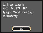Tarkista, että laitteeseen on lisätty näytössä näkyvää paperikokoa ja -tyyppiä, ja napauta kohtaa <OK>.