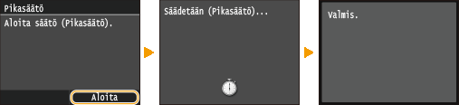 Tämä säätö säilyttää optimointitilan, joka saatiin suorittamalla <Täyssäätö>. Huomaa, että et voi suorittaa tätä säätöä, kun teet jotain muita toimintoja, esimerkiksi skannaat tai tulostat. Jos tämän säädön tulos ei ole tyydyttävä, suorita <Täyssäätö>. Tämä säätö saatetaan suorittaa automaattisesti, kun vaihdat väriainekasetin.