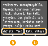 Jos suorayhteydessä on liian pitkä tauko, jolloin laitteen ja mobiililaitteen välillä ei tapahdu tiedonsiirtoa, yhteys voi päättyä.