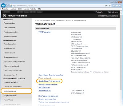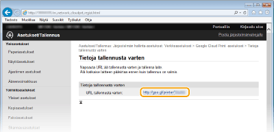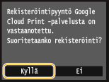 Kun haluat tulostaa Google Cloud Print -palvelun avulla, rekisteröi laite Google Cloud Print -palveluun.
