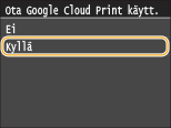 Ota käyttöön laitteen Google Cloud Print -toiminto. Voit myös poistaa käytöstä laitteen Google Cloud Print -toiminnon.