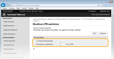 Valitse LPD-tulostuksen valintaruutu. Kun ei käytetä LPD-tulostusta, poista valintaruudun valinta. [Käytä RAW-tulostusta]