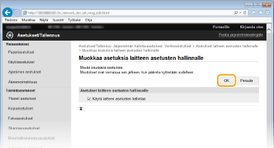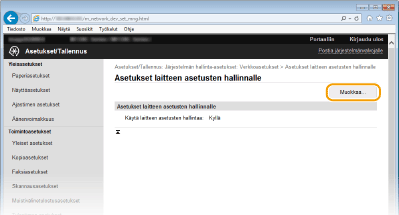 iW Management Console-ohjelmiston lisäosien käyttäminenErityisen asetus ja SNMP-asetus (SNMPv1 tai SNMPv3) on otettava käyttöön iW Management Console -ohjelmiston lisäosan kanssa kommunikoimiseksi.