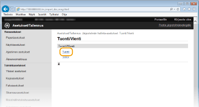 Lataa (tuo) tiedot, jotka vietiin koneesta. Voit myös tuoda asetukset toisesta laitteesta, jos se on sama malli kuin sinun koneesi.