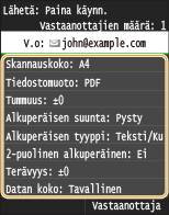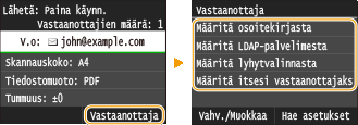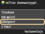 Jos haluat tallentaa asetusyhdistelmän käytettäväksi tarvittaessa: Usein käytettyjen skannausasetusten tallentaminen (sähköposti/I-faksi/jaettu kansio/FTP-palvelin)