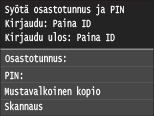 Vahvista tätä napsauttamalla, että on syötetty oikea tunnus ja PIN. Tämä toiminto ei ole käytettävissä, mikäli laite ja tietokone on yhdistetty USB- tai WSD (Web Services on Devices) -portin välityksellä.