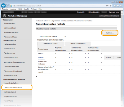 Tallennetun osastotunnuksen asetusten muokkaaminen|