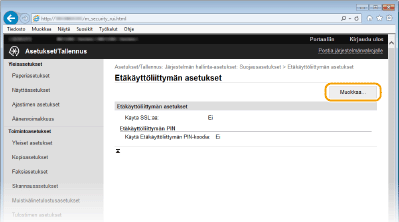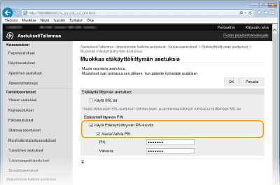 Valitse [Käytä Etäkäyttöliittymän PIN-koodia] -valintaruutu ja aseta PIN-koodi.