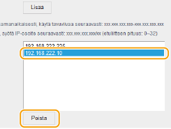 Valitse IP-osoite ja sitten [Poista]. ![]() |