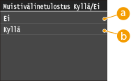 Napauta kohtaa <Muistivälinetulostus Kyllä/Ei>.