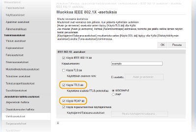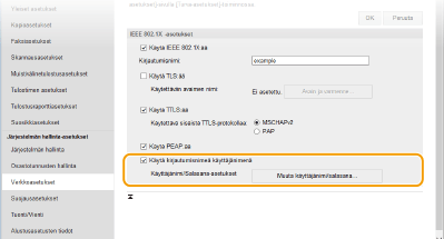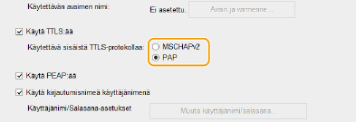 Valitse [Käytä TTLS:ää]- tai [Käytä PEAP:ää] -valintaruutu.