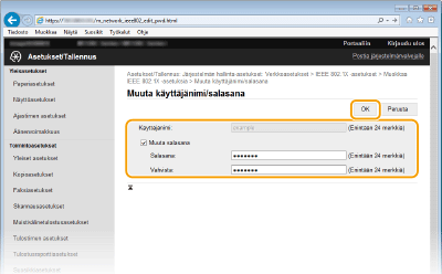 Aseta käyttäjänimi/salasana ja valitse [OK].