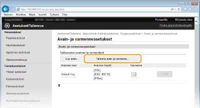 Valitse [Tallenna] tallennettavan avainparin oikealla puolella.