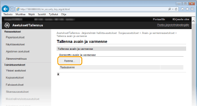 [Avain- ja varmenneasetukset] tai [CA-varmenteen asetukset] (CA-varmenteille).