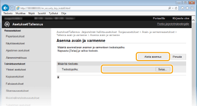 Valitse [Avain- ja varmenneasetukset] avainparin asentamiseksi tai [CA-varmenteen asetukset] CA-varmenteen asentamiseksi.
