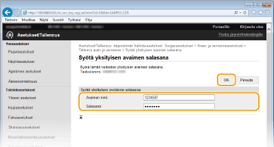 Syötä avainparin nimi ja salasana ja valitse [OK].
