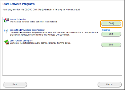 Klikněte na tlačítko [Start] (Spustit) u položky [Manual Uninstaller] (Ruční odinstalace).
