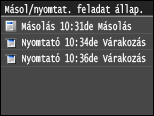 Másolási/nyomtatási/küldési/fogadási feladatok állapota