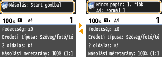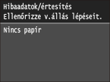 <Papír- beállítások>E gomb használatával adható meg a papírfiókba és a kézi adagolónyílásba töltött papír mérete és típusa is. Papírméret és -típus beállítása