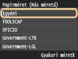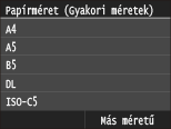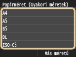 Ha a papír behelyezésekor nem jelenik meg a fenti képernyőHa mindig ugyanolyan papírt helyez a kézi adagolónyílásba, akkor elhagyhatja a papírbeállítási műveleteket, ha a papírméretet és -típust bejegyzi alapértelmezett beállításként. Ha az alapértelmezett beállítás be van jegyezve, akkor viszont a fenti képernyő nem jelenik meg. A képernyő megjelenítéséhez válassza a <Ki> értéket az <Alapértelmez. beáll. bejegyz.> beállításban (Kézi adagolónyílás alapértelmezett papírméretének bejegyzése).