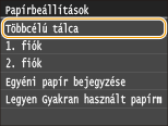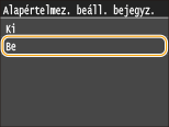 Az alapértelmezett papírbeállítás bejegyzése után a papírok behelyezésekor nem jelenik meg a papírbeállító képernyő, a készülék mindig ugyanazt a beállítást alkalmazza. Ha a papírbeállítások módosítása nélkül helyez be más méretű vagy típusú papírt, akkor a készülék valószínűleg nem megfelelően fog nyomtatni. A probléma elkerülése érdekében kapcsolja ki az alapértelmezett beállítást úgy, hogy a 3. lépésben a <Ki> lehetőséget választja. Ezután helyezze be a papírt.