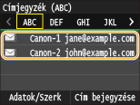 gombot, majd érintse meg a <Címjegyzék> gombot.