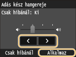 gomb használatával állítsa be a hangerőt, majd érintse meg az <Alkalmaz> gombot.