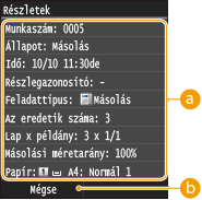 A példányszámot, a beállításokat és más adatokat jelenít meg. Ha a másolás megszakítása nélkül szeretné ellenőrizni az adatokat, akkor a